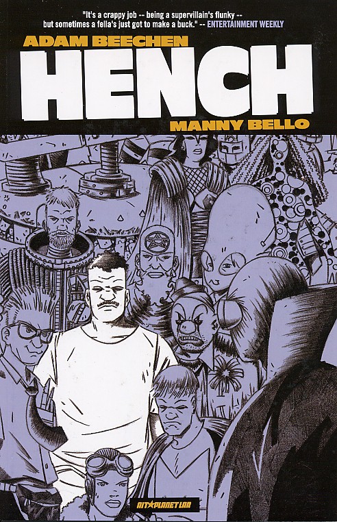 “Using ingenuity and a nice sense of humanity, Beechen and Bello provide an original take on the notion of superheroes and super villains by focusing not on the stars but on the bit players: the villains’ henchmen. Readers don’t pay much attention to such characters; they’re just the awkward thugs in drab outfits who get thrown out of the way as the attractively costumed hero lunges at the equally stylish boss evildoer. Nobody really notices them as people or wonders how they ever could imagine that they’d be more than anonymous losers. Beechen’s script gives one henchman, Mike, a convincing history, and Bello’s simple but clear art gives him a stoic yet vulnerable face. Mike’s just an average guy with more brawn than brains. He wants to provide for his family and thinks the pay a super villain offers for henching is worth the risk. Even knowing he’s probably going to fail, Mike doesn’t know how to stop. In-joke references fill the writing and art, but the overall effect is serious as Mike discovers things about himself and the other characters, in particular the fact that dangerously obsessive, monomaniacal heroes are much closer to the villains than they’d like to admit. At that point, Mike can stop being a henchman, and readers can put down the comic feeling satisfied that they’ve watched someone grow up.”